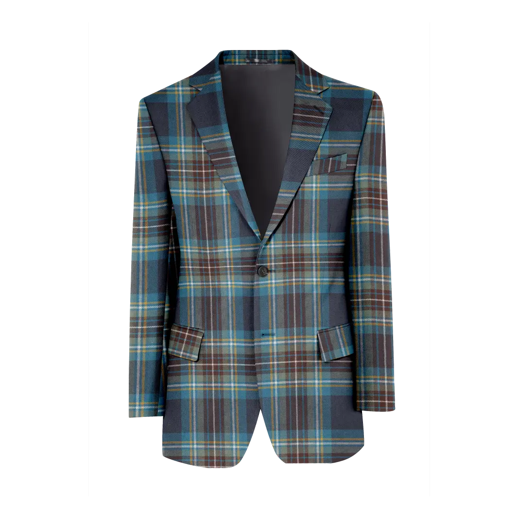 Pure wool tartan waistcoat with lapels and satin back. Our men's tartan waistcoats have 5 buttons, 2 jetted front pockets and a sliding adjustment buckle on the back.