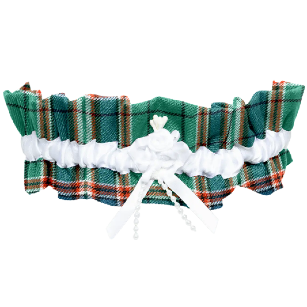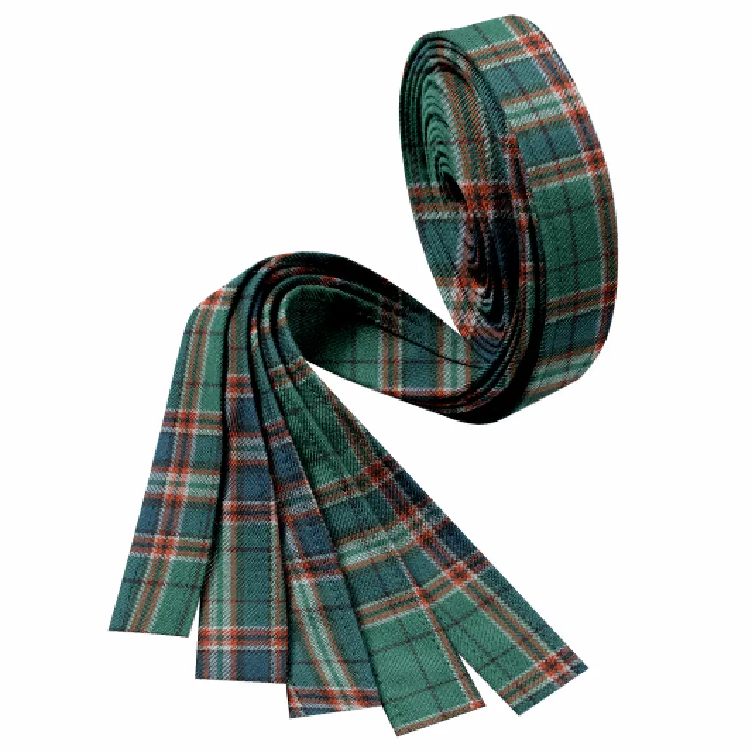 Two ribbons made from two different plaids. e.g. One Fraser Hunting Weathered Ribbon and one Leslie Red Modern Ribbon.