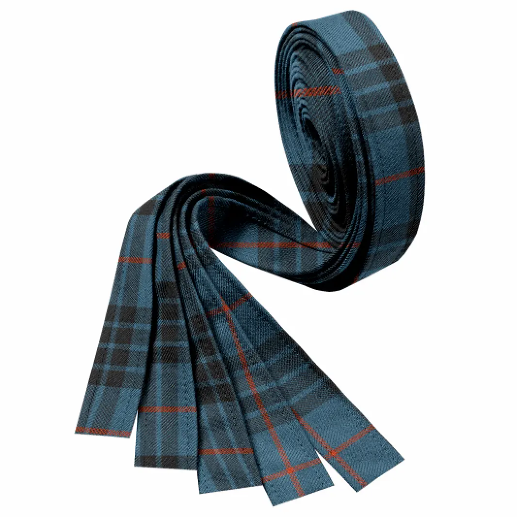 Two ribbons made from the same plaid. Two identical ribbons. e. g. Two Buchanan Modern ribbons.
