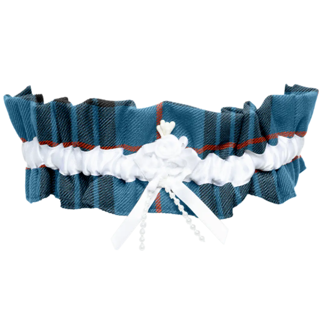 Two ribbons made from two different plaids. e.g. One Fraser Hunting Weathered Ribbon and one Leslie Red Modern Ribbon.