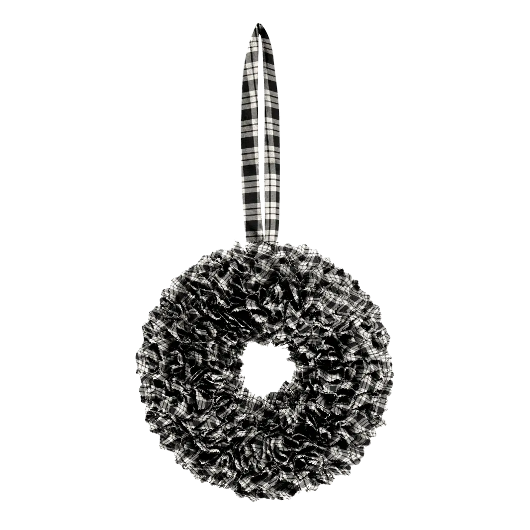 We use 1.5 metres of lightweight 8oz wool plaid fabric woven in Scotland to make your wreath and provide you with a matching tartan hanger so you can attach it to your door.